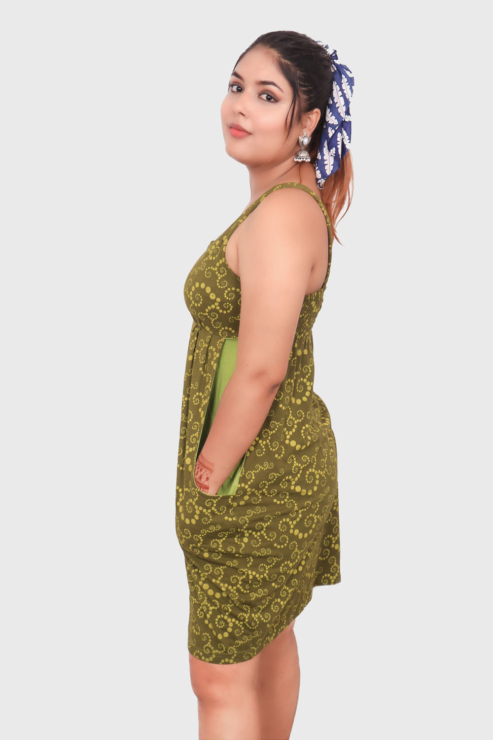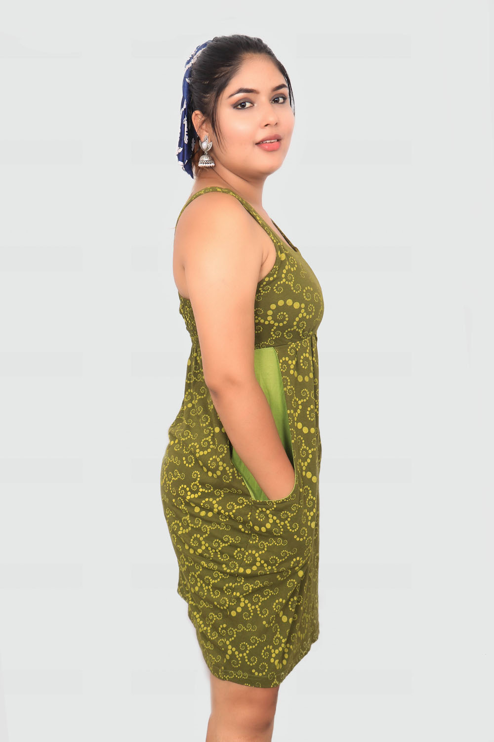 Made up with  sinker Nepali Cotton. It has round u shaped neck with bot side pocket.