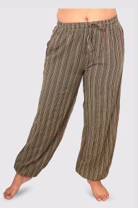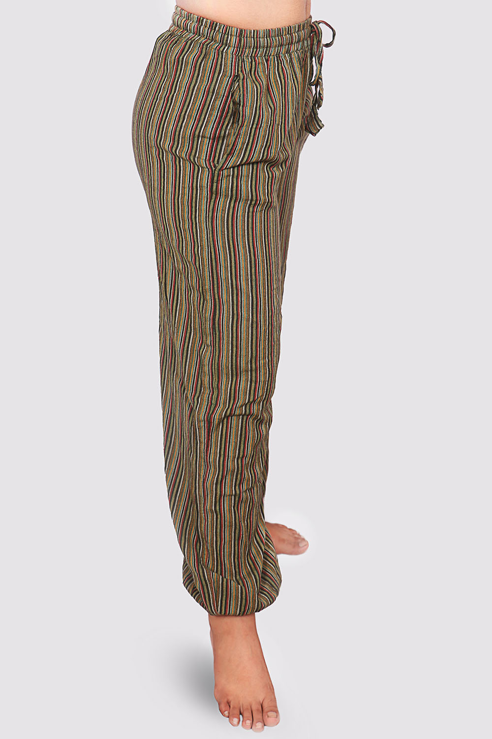 Made up with hand loom Nepali Cotton. It has elastic on belt and rope with both side pocket.